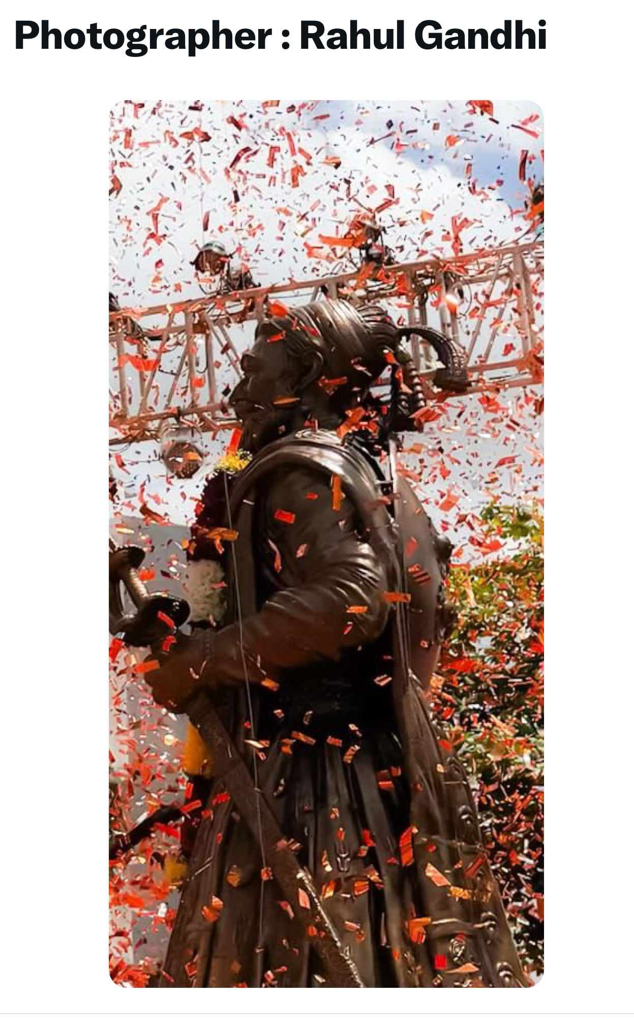 राहुल ने जय भवानी, जय शिवाजी का उदघोष करते हुए कहा कि शिवाजी महाराज साहस, संवेदना और न्याय की प्रतिमूर्ति थे – कांग्रेस पार्टी और INDIA शिवाजी महाराज के दिखाए रास्ते पर चल कर उनकी विचारधारा की रक्षा कर रहे हैं, क्योंकि उनकी सोच ही भारत के संविधान में समाहित है। भाजपा उसी विचारधारा के विरुद्ध खड़ी हो कर संविधान को नष्ट करने की कोशिश में लगी है।