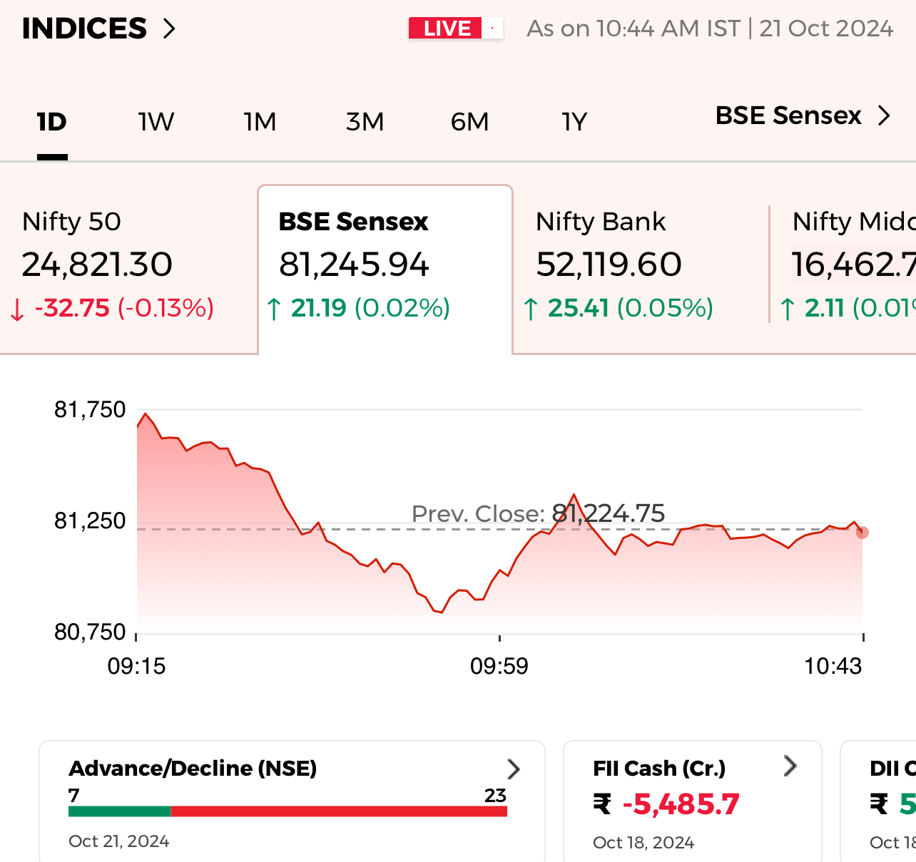 मार्च 2020 में, जब FIIs ने 7.9 बिलियन डॉलर (58,632 करोड़ रुपये) के भारतीय शेयर बेचे थे, तब निफ्टी में 23% की गिरावट दर्ज की गई थी, जबकि घरेलू संस्थागत निवेशकों (DIIs) ने लगभग 55,595 करोड़ रुपये की खरीदारी की थी। इस बार भी FIIs ने 83,000 करोड़ रुपये से अधिक के शेयर बेचे हैं, वहीं DIIs, जो मुख्यतः म्यूचुअल फंड होते हैं, ने अक्टूबर में अब तक लगभग 74,200 करोड़ रुपये की खरीदारी की है, जो NSDL के आंकड़ों के अनुसार है।