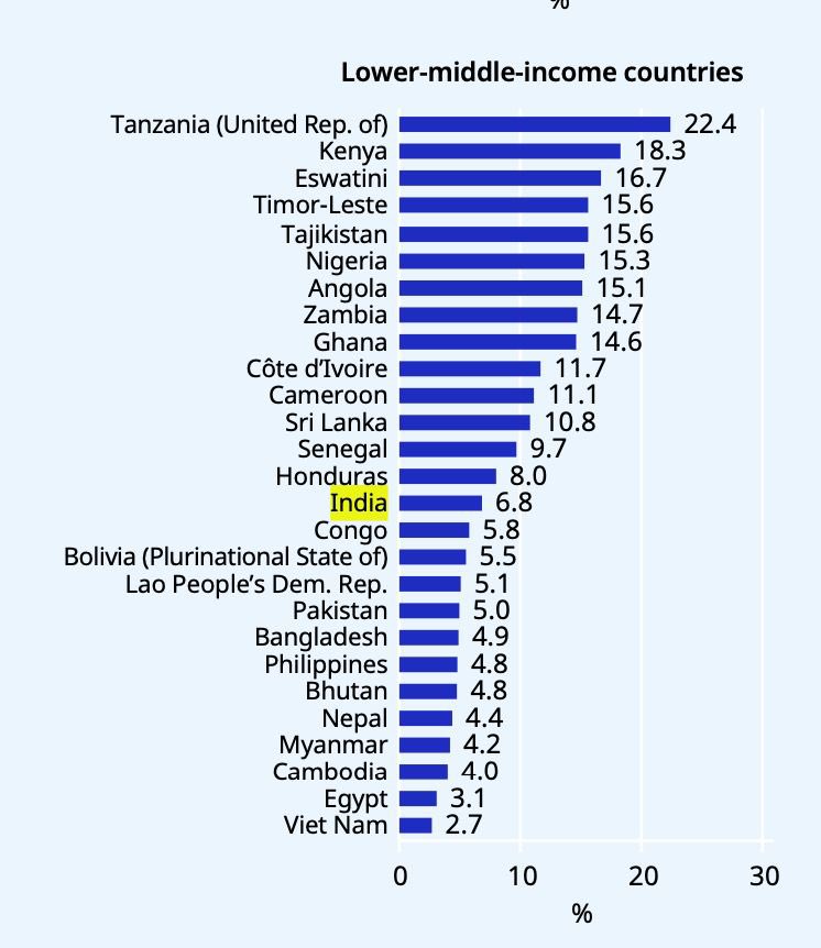 रिपोर्ट में यह भी उल्लेख किया गया है कि भारत में नियमित वेतन प्राप्त करने वाले श्रमिकों की हिस्सेदारी निम्न और मध्यम आय वाले देशों में सबसे कम है। अधिकांश श्रमिक स्व-रोज़गार में लगे हुए हैं, जो आमतौर पर अनौपचारिक, अस्थिर और कम वेतन वाला होता है।