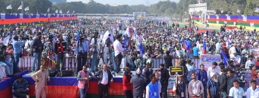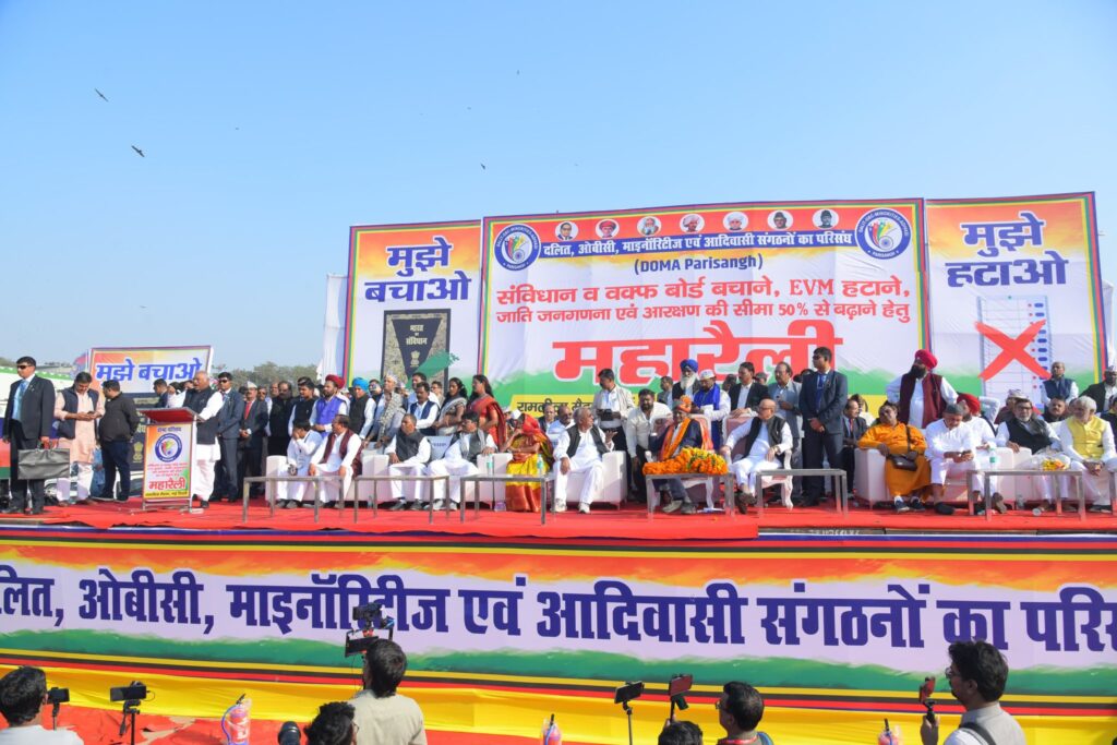 दिल्ली के ऐतिहासिक रामलीला मैदान में संविधान बचाओ, आरक्षण की सीमा बढ़ाने और जाति जनगणना की मांग को लेकर आज विशाल रैली आयोजित की गई। कांग्रेस अध्यक्ष मल्लिकार्जुन खड़गे ने दलित, ओबीसी, अल्पसंख्यक और आदिवासी संगठनों के फेडरेशन को इस आयोजन के लिए बधाई दी और इसे “एक छोटे भारत” का प्रतीक बताया।