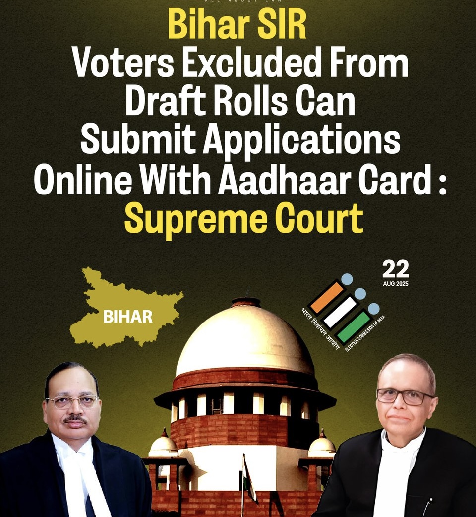 सुप्रीम कोर्ट ने शुक्रवार को बिहार स्पेशल इंटेंसिव रिवीजन (SIR) मामले में बड़ा फैसला सुनाते हुए चुनाव आयोग (ECI) को निर्देश दिया कि मतदाता सूची में नाम जुड़वाने के लिए ऑनलाइन दावे स्वीकार किए जाएं। साथ ही अदालत ने राजनीतिक दलों और उनके बूथ लेवल एजेंट्स (BLAs) को भी उन मतदाताओं की मदद करने के लिए कहा जिनके नाम सूची से हटाए गए हैं और जो समय पर फॉर्म नहीं भर सके।