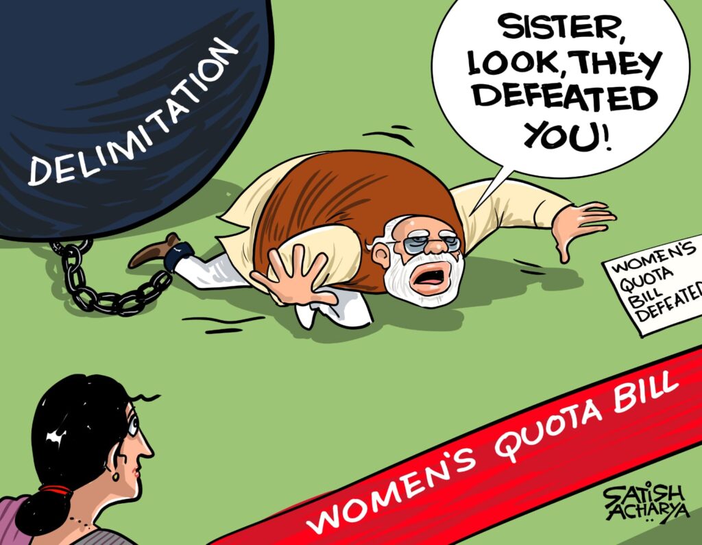 कांग्रेस और अन्य विपक्षी दलों ने आरोप लगाया कि महिलाओं के आरक्षण के नाम पर सरकार ने परिसीमन के जरिए राजनीतिक प्रतिनिधित्व बदलने की कोशिश की। विपक्ष का कहना है कि इससे जनसंख्या आधारित पुनर्वितरण में कुछ बड़े हिंदीभाषी राज्यों को अधिक लाभ मिलता, जबकि दक्षिण भारत और छोटे राज्यों का प्रभाव घट सकता था।