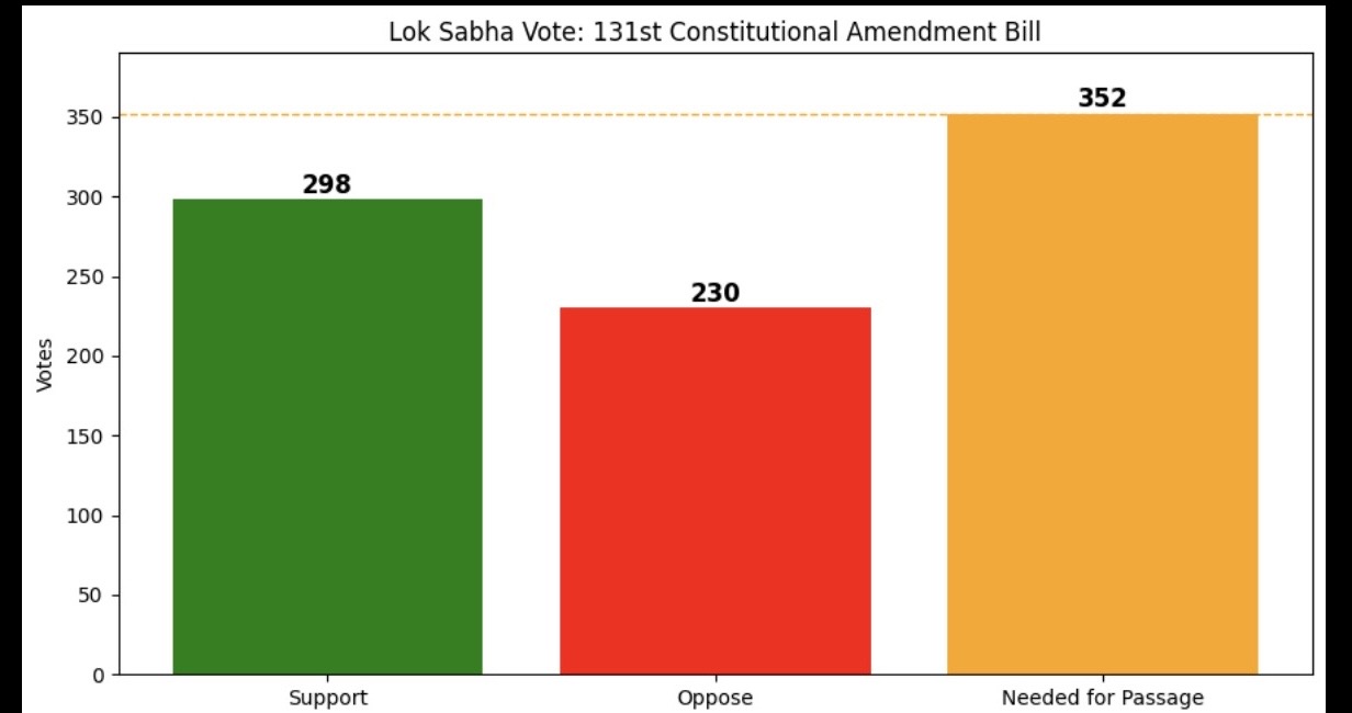 सरकार की ओर से कहा गया था कि यह विधेयक महिलाओं के आरक्षण को लागू करने का रास्ता साफ करेगा और भविष्य की जनगणना के बाद नई सीट व्यवस्था बनेगी। लेकिन सदन में जरूरी संख्या न जुटा पाने से सरकार को बड़ा झटका लगा है।
